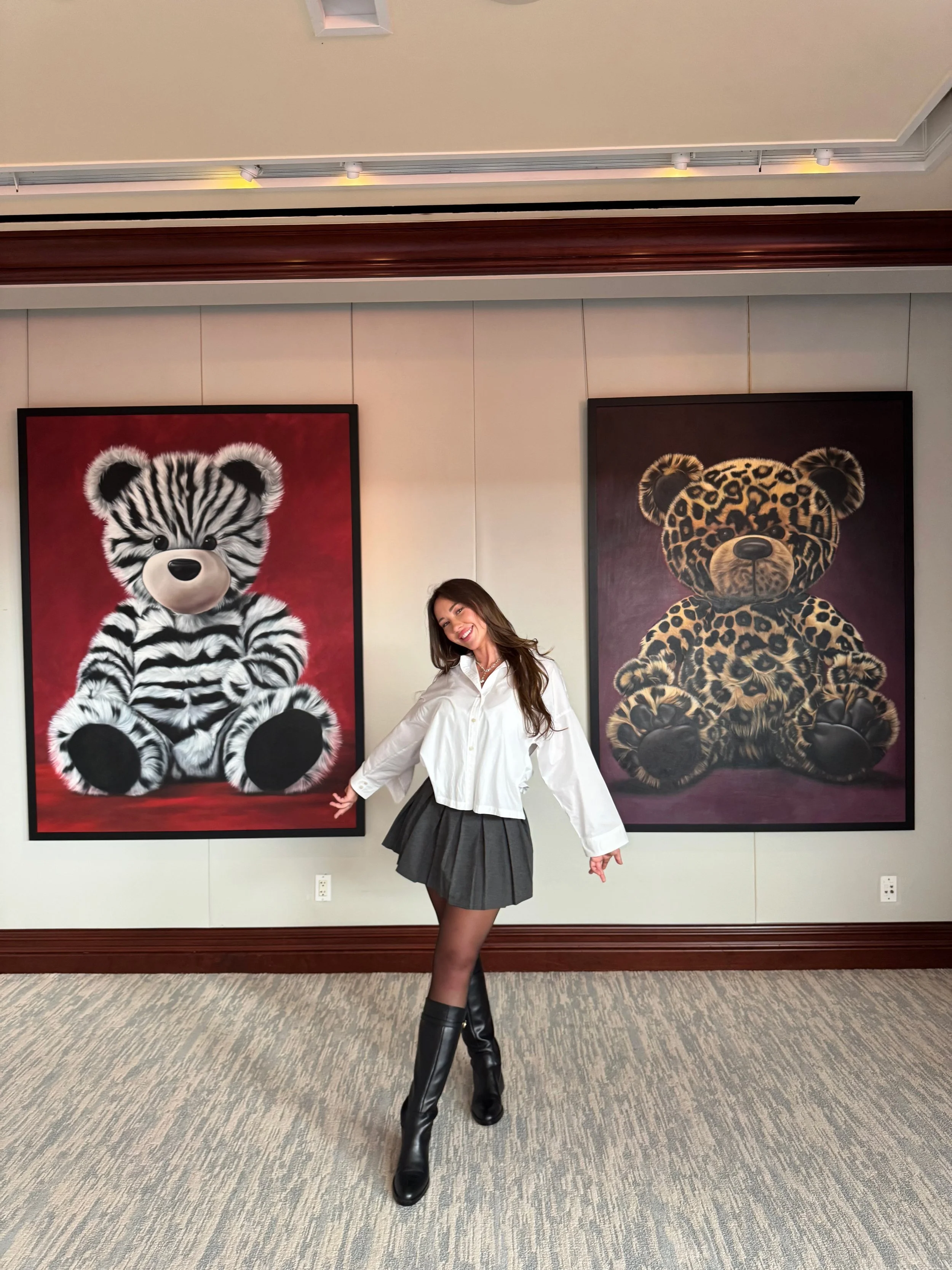 Maïté’s new series, The Altered Familiar, explores the transformation of a universally cherished icon: the teddy bear. In this series, Maïté Côté merges hyper-realism with whimsical surrealism, reimagining these childhood symbols with traits of other animals. Each painting invites viewers to see beyond the familiar, uncovering layered identities that blur the lines between comfort and wildness, from bears with leopard fur to those cloaked in snake scales. Through meticulous detail and imaginative fusion, the series challenges perceptions of identity, adaptation, and the beauty of coexistence in hybrid forms.